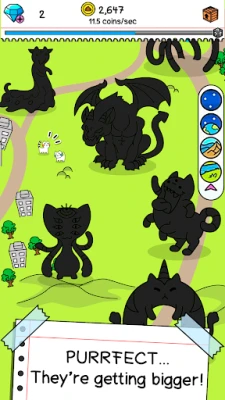 Cat Evolution dirancang sebagai permainan clicker pasif yang memikat, menawarkan cara yang seru dan menyenangkan untuk mengumpulkan serta mengombinasikan kucing-kucing menggemaskan. Anda bisa terus membuat kemajuan bahkan saat tidak aktif bermain, berkat mekanisme idle yang cerdas. Cukup dengan sesekali ketukan, Anda dapat mempercepat perolehan koin dan kucing baru untuk proses penggabungan. Apakah Anda seorang pencinta kucing sejati atau penggemar game idle, Cat Evolution menjanjikan hiburan berjam-jam. Bersiaplah untuk mengumpulkan, menggabungkan, dan berevolusi menuju puncak kerajaan kucing di Cat Evolution. Meskipun gratis dimainkan, beberapa item dan fitur tambahan dalam game ini dapat dibeli dengan uang sungguhan.