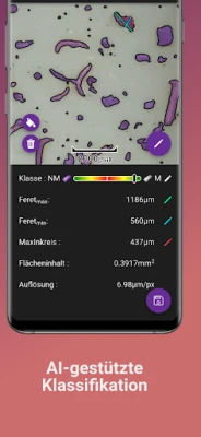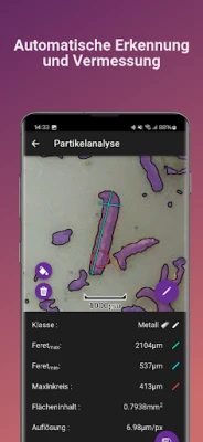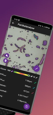 PartikelLens, aplikasi dari Partikel A.R.T., dirancang untuk mengukur partikel terkecil dengan akurat menggunakan kartu nama khusus. Aplikasi ini secara otomatis mendeteksi partikel yang difoto, lalu menghitung dan menampilkan Feret min/max, luas, serta lingkaran dalam maksimum dalam satuan µm.